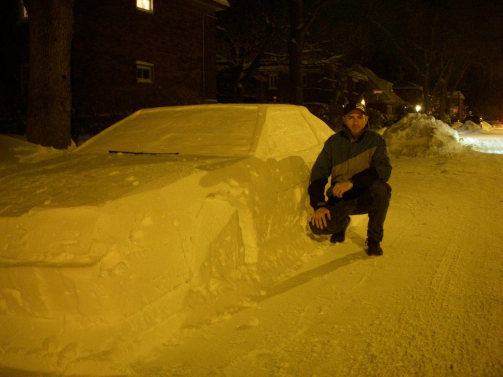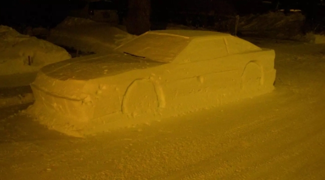 Ky zotëri vendosi që të bënte një makinë prej bore në përmasa reale. Puna e tij ishte jashtëzakonisht reale, aq sa dukej sikur makina ishte e mbuluar nga bora prej ditësh në një vend ku nuk lejohej parkimi.