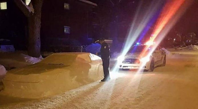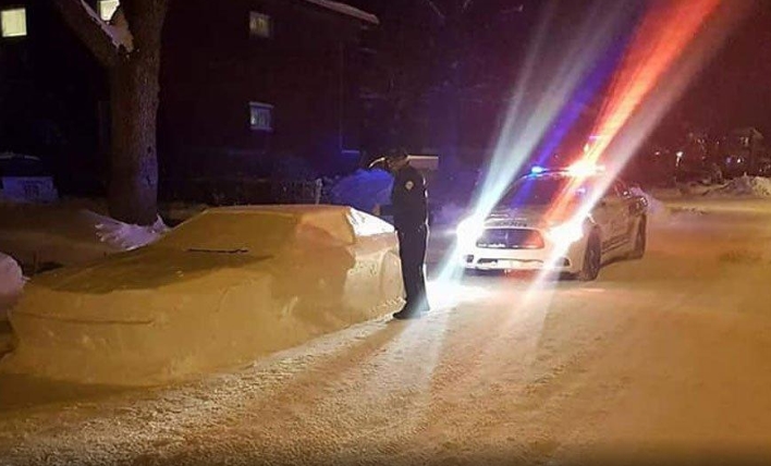 Policët që po patrullonin ndaluan kur panë këtë makinë prej bore dhe nisën të bënin gati gjobën. Rrengun, Simon Laprise e ndoqi dhe e dokumentoi nga dritarja e shtëpisë së tij. Policët, në vend që të inatoseshin, lanë mbi makinën e borës një letër ku shkruhej: “Na ke bërë të lumtur këtë natë. Hahaha”.