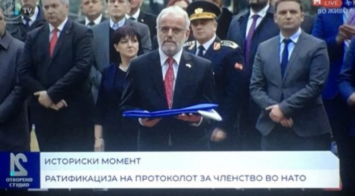 Tashmë edhe zyrtarisht është bërë ngritja e flamurit të NATO-s në oborrin e Kuvendit të RMV-së nga ana e Talat Xhaferit, kryetar i Kuvendit të RMV-së, duke qenë të pranishëm edhe mysafirët ndërkombëtar. Maqedonia e Veriut bëhet anëtarja e 30-të e NATO-s.