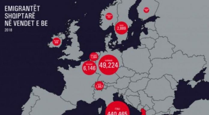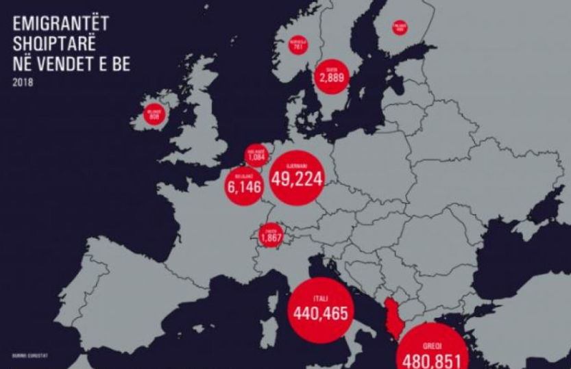 Në 2018-n numri i shqiptarëve rezidentë në një nga vendet e Bashkimit Europian ishte 990,372 sipas të dhënave të publikuara nga Eurostat. Pjesa më e madhe e tyre janë të përqendruar në shtete fqinje, rreth 90%.