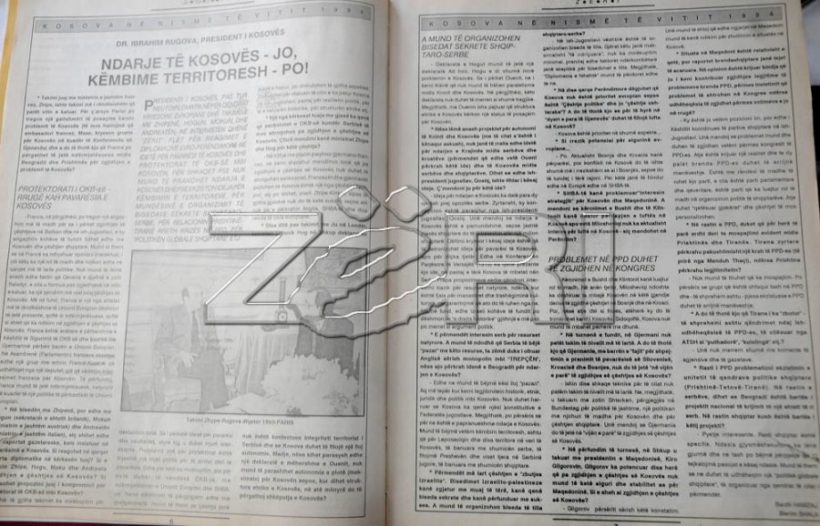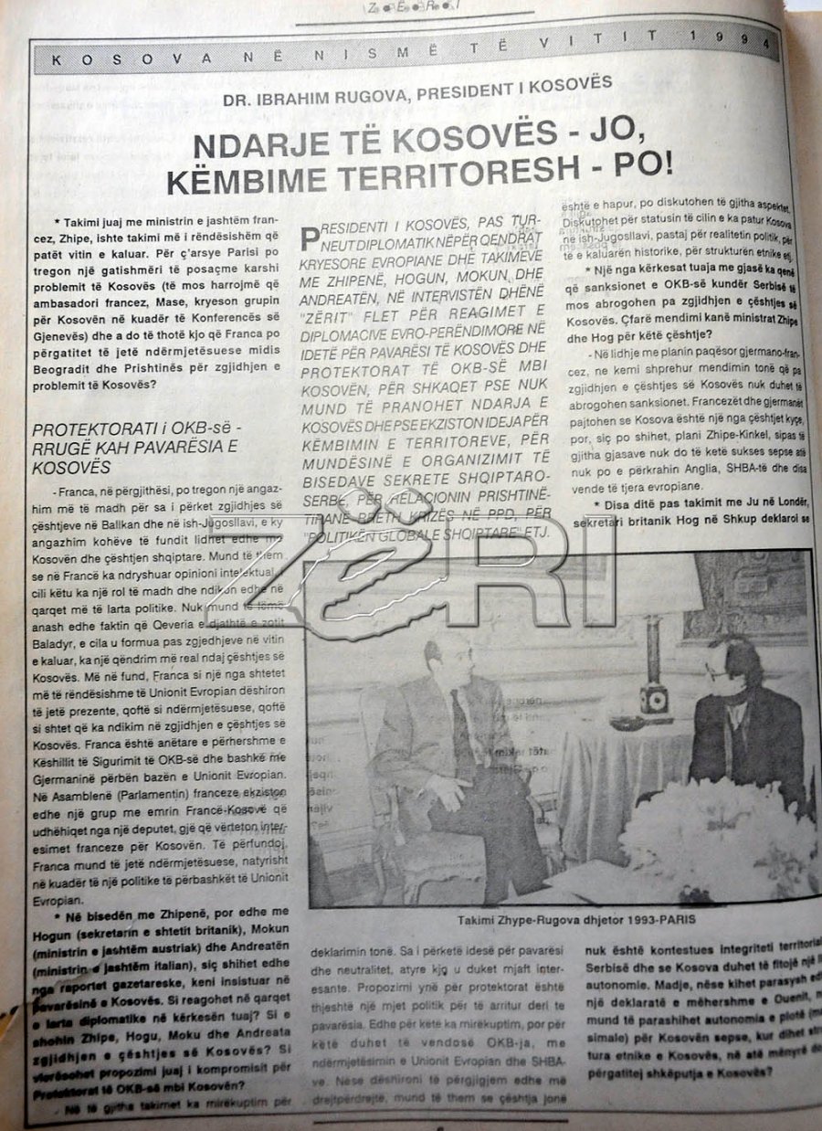 “Ndarje të Kosovës-JO, këmbim territoresh-PO”, ky ishte titulli i intervistës së botuar në Gazetën “Zëri”, e cila ishte realizuar me ish-kryetarin Rugova atë kohë.