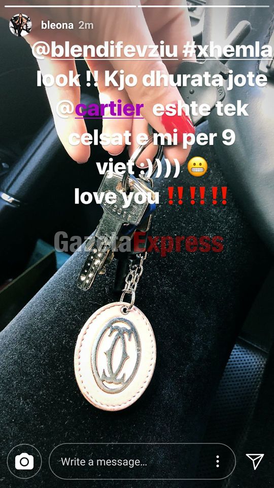 Ai i ka dhuruar rreth 9 vite më parë një varëse çelësash të firmës “Cartier”. Bleona e ka publikuar këtë dhuratë duke shkruar: