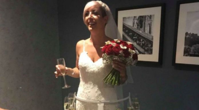 Kelly McMillan, 38 vjeçare kishte kornizën e çelikut të ngurtë në fustanin e ditës së saj të madhe me rastin e martesës, transmeton Indeksonline.