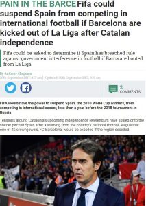 Por, “The Sun” shkruan se FIFA mund të vendos nëse Spanja ka shkelur rregullat kundër ndërhyrjes qeveritare në futboll në rast të një përjashtimi të Barcelonës nga La Liga.