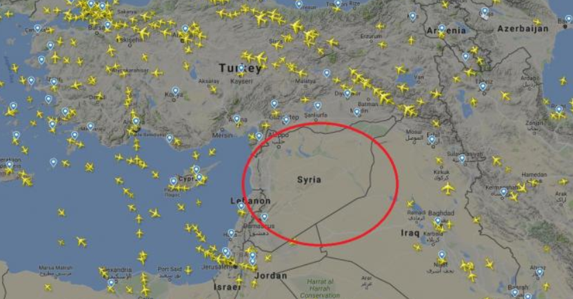 Siç duket edhe nga pamjet, avionët zgjedhin të kalojnë përmes veriut nga Turqia apo jugut nga izraeli dhe Jordania për në destinacion duke shmangur hapësirën ajrore të Sirisë.
