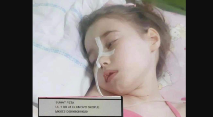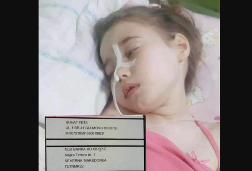 Lina Feta vajza 7 vjeçare nga Komuna e Sarajit, respektivisht nga fshati Gllumovë, e cila ka 2 muaj që ndodhet në gjendje kome në spitalin klinik të Shkupit.
