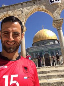 Qendermbrojtesi i Kombetares Shqiptare, Mergim Mavraj, ka vizituar xhamine e shenjte Al Aksa qe ndodhet ne Jerusalem.