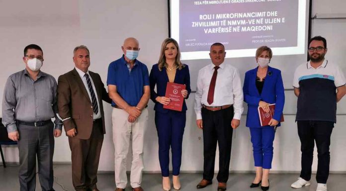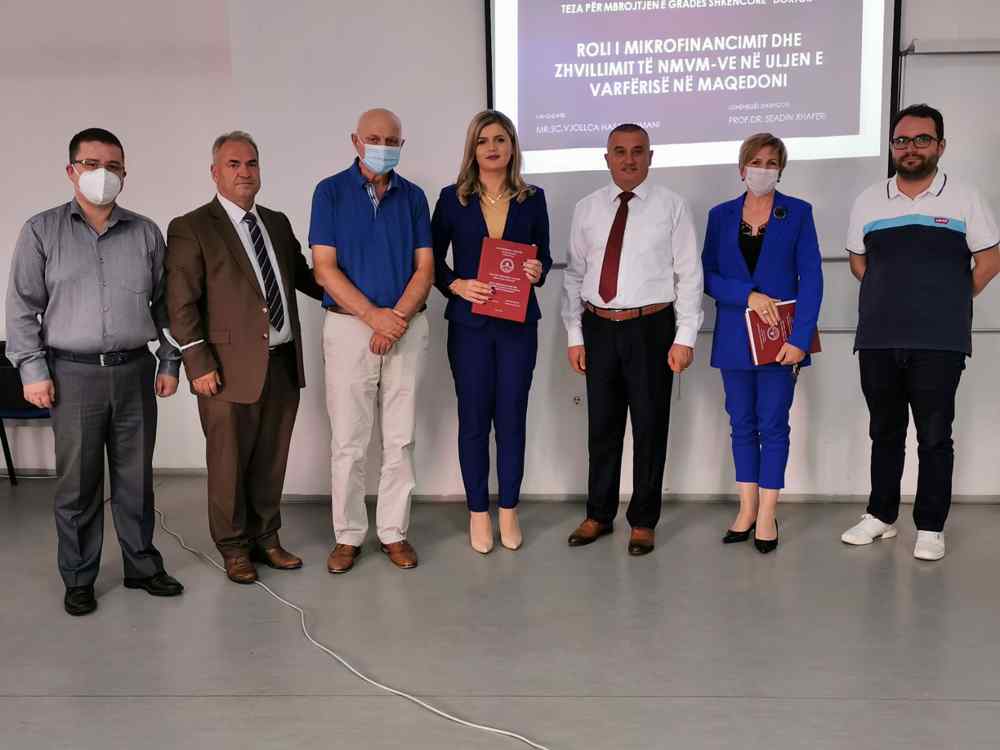 “Roli i mikrofinancimit dhe zhvillimit të NMVM-ve në uljen e varfërisë në Maqedoni” dhe mori titullin Doktor i shkencave. Mbrojtja e këtij disertacioni u realizua para komisionit, në përbërje: Prof.Dr. Etem Iseni – kryetar, Prof.Dr. Alifeta Selimi – anëtar, Prof.Dr. Raman Ismaili – anëtar, Prof.Dr. Brikend Aziri – anëtar, Prof.Dr. Merale Fetai – anëtare, ndërsa gjatë studimeve të ciklit të tretë, kandidatja ishte nën udhëheqje shkencore të mentorit Prof. Dr. Seadin Xhaferi.