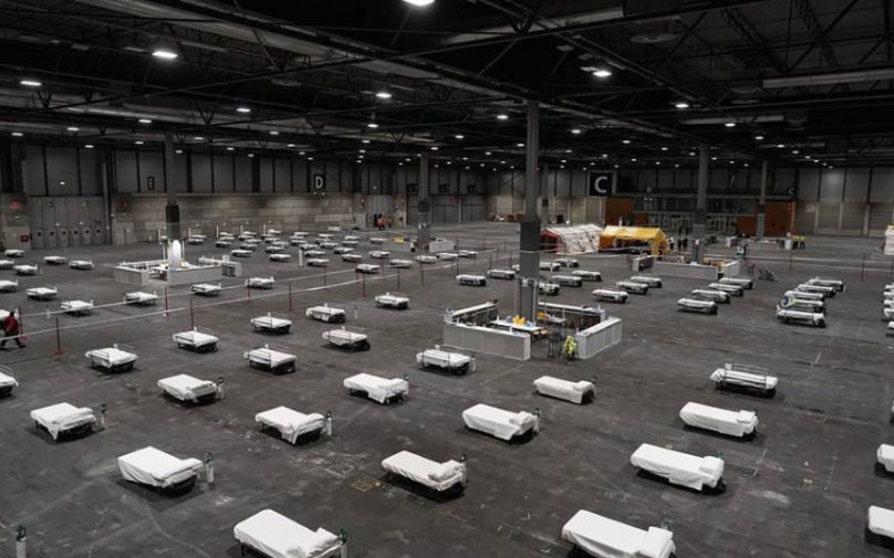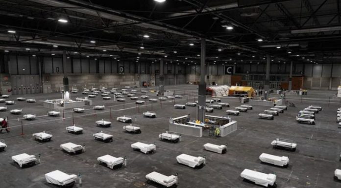 Këto foto po bëjnë xhiron e mediave kryesore ndërkombëtare. Ato tregojnë një spital të improvizuar, të ngritur në një qendër konferencash në Madrid të Spanjës.