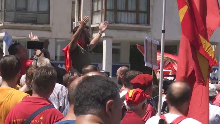 Në protestën e sotme u arrestuan 4 persona. Sot është protesta e 11-të me radhë kundër propozimit francez. Ato filluan më 2 korrik, dy ditë pasi BE-ja ua dorëzoi propozimin autoriteteve maqedonase.