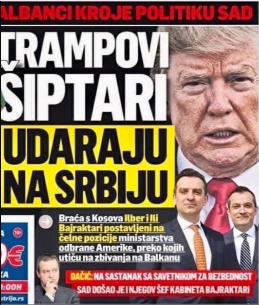Në ballinat e sotme, njëra prej tyre ka shkruar një shkrim të titulluar me; “Trampovi siptari udaraju na srbiju” (Shqiptarët e Trumpit godasin Serbinë)
