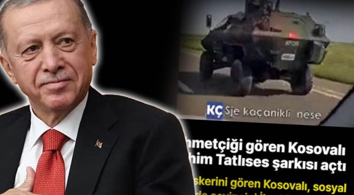 “Duke parë ushtarin turk, kosovarët kanë ndarë gëzimin e tyre me këngën İbrahim Tatlıses”, mbishkrimi në videon e publikuar nga faqja “Sje kaçanikli, nëse”.
