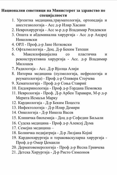 Ata janë pjesë e listës së 21 këshilltarëve të zgjedhur nga ministri Taravari dhe dokumenti është nënshkruar nga kreu i kabinetit Besnik Hamiti dhe sekretari i shtetit Vladimir Miloshev i cili edhe vetë është në listën e këshilltarëve.