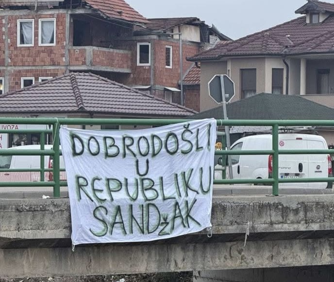Në hyrje të Novi Pazarit kryeqendrës së Sanxhakut janë parë banderola me mbishkrimin “Mirë se vini në Republikën e Sanxhakut”.