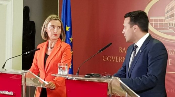 Përfaqësuesja e lartë e BE-së për Politikë të jashtme dhe Siguri, Federica Mogherini tha se Maqedonia i është kthyer shtegut të duhur dhe se meritoi rekomandimin e pastër nga KE për hapjen e negociatave për anëtarësim në BE.