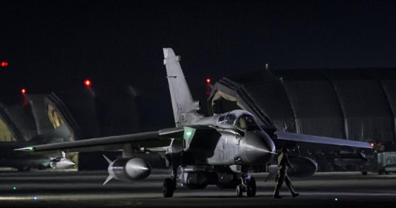Katër avionë ushtarakë GR4 Tornado lanë bazën e tyre në Akrotiri të Qipros në orën 03:00 të mëngjesit të ditës së shtunë për të bombarduar depotë me armë kimike pranë qytetit të Homsit.