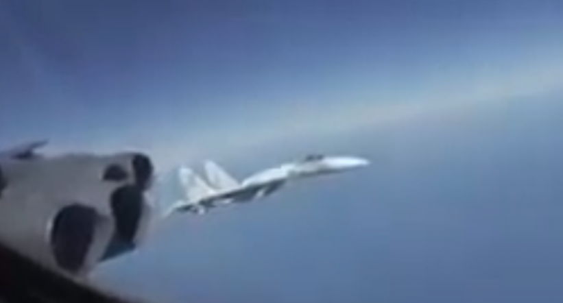 Një avion luftarak rus u filmua duke u afruar rrezikshëm në krahun e majtë të bombarduesit, dhe pas kontaktit vizual, çau ajrin përpara me shpejtësi vetëm 30 metra nga hunda e mjetit amerikan.