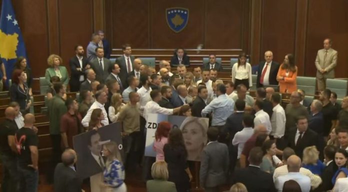Deputetja e Aleancës për Ardhmërinë e Kosovës, Albana Bytyqi, ka gjuajtur me shishe të ujit në drejtim të kryeparlamentarit Konjufca.