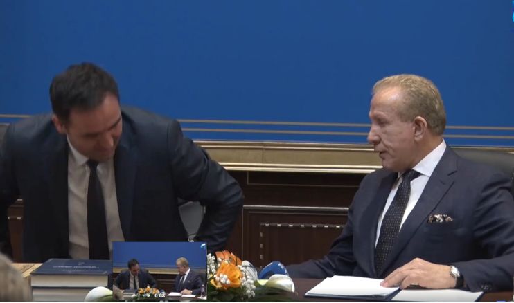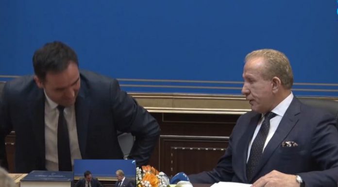 Gjatë fjalimit të Behgjet Pacollit, karriga e Glauk Konjufcës e lëshoi atë duke e vënë në një moment qesharak.