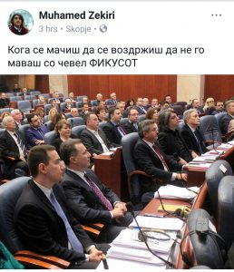 Zekiri ka postuar një fotografi në facebook nga seanca e sotme gjatë paraqitjes së Ivanovit, duke e shoqëruar me komentin: Kur mundohesh të mos e gjuash me kepucë Ivanovin.