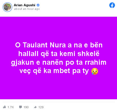 “O Taulant Nuraj a na bën hallall që ta kemi shkelë gjakun e nanën po ta rrahim veç që ka mbet pa ty”, shkruan Gold Ag.
