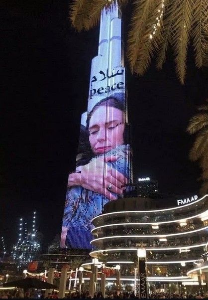Fotografia u projektua në rrokaqiellin e lartë prej 829 metarsh në Dubai si simbol i paqes.
