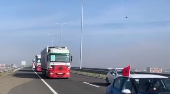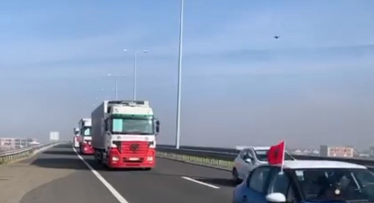 Në facebook Astrit Panxha ka postuar një video ku kamionë të tërë janë nisur drejt Shqipërisë.