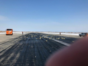 Sipas raporteve fillestare, 172 blloqe ari që ranë nga aeroplani që peshojnë 3.4 tonë, janë gjetur në pistën e aeroportit, ku u bë e ditur që një pjesë e ngarkesës ka rënë për shkak se dyret nuk ishin mbyllur hermetikisht.