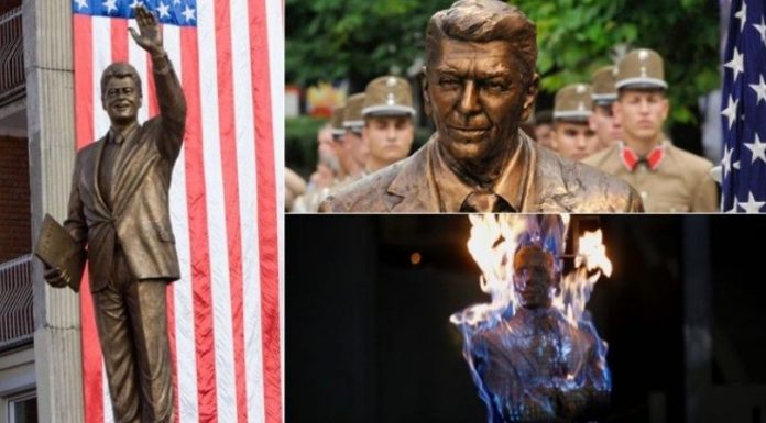 Ronald Reagan ka një statujë në Budapest, Hungari.