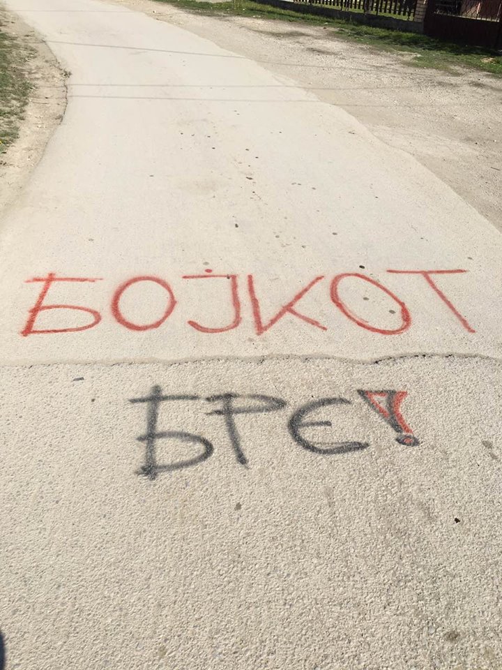 Në fshatin Misleshevo të Strugës, mëngjesin e sotëm rreth orës 09:00, janë shfaqur parulla me mbishkrimet BOJKOTO-VERIUN, të varur në rrugët e fshatit. Po ashtu mesazhe me të njëjtat përmbajtje janë gjetur edhe të shkruara nëpër mure dhe rrugë të këtij fshati. Sektori i Punëve të Brendshme të Ohrit ka bërë të ditur se rreth orës 9:00 të mëngjesit të sotëm, stacioni policor në Strugë është njoftuar se në një shtyllë telefoni, në afërsi të shkollës fillore “Jonce Krezhoski” në këtë fshat, janë gjetur shkrime propagandistike për zgjedhjet e nesërme presidenciale. Nga Policia njoftojnë se janë marrë të gjitha masat për të pastruar mbishkrimet dhe parullat. Gjithashtu policia e Strugës informon se një rast tjetër i tillë është vërejtur edhe në gardhin rrethues të shkollës fillore “Shën Cirkoski Lazari” në fshatin Vranishtë, ku policia gjeti një tablo të varur me njërin prej kandidatëve në zgjedhjet e nesërme presidenciale. Edhe në këtë rast janë marrë masa për të larguar tablonë.