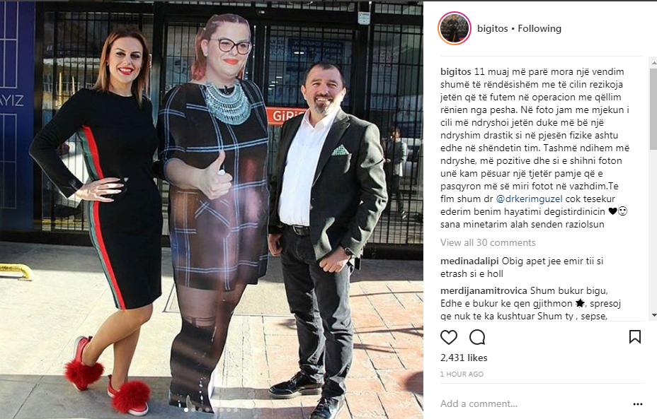 “11 muaj më parë mora një vendim shumë të rëndësishëm me të cilin rezikoja jetën që të futem në operacion me qëllim rënien nga pesha. Në foto jam me mjekun i cili më ndryshoi jetën duke më bë një ndryshim drastik si në pjesën fizike ashtu edhe në shëndetin tim. Tashmë ndihem më ndryshe, më pozitive dhe si e shihni foton unë kam pësuar një tjetër pamje që e pasqyron më së miri fotot në vazhdim.”- ka shkruar Besiana në profilin e saj në Instagram./InfoShqip.com
