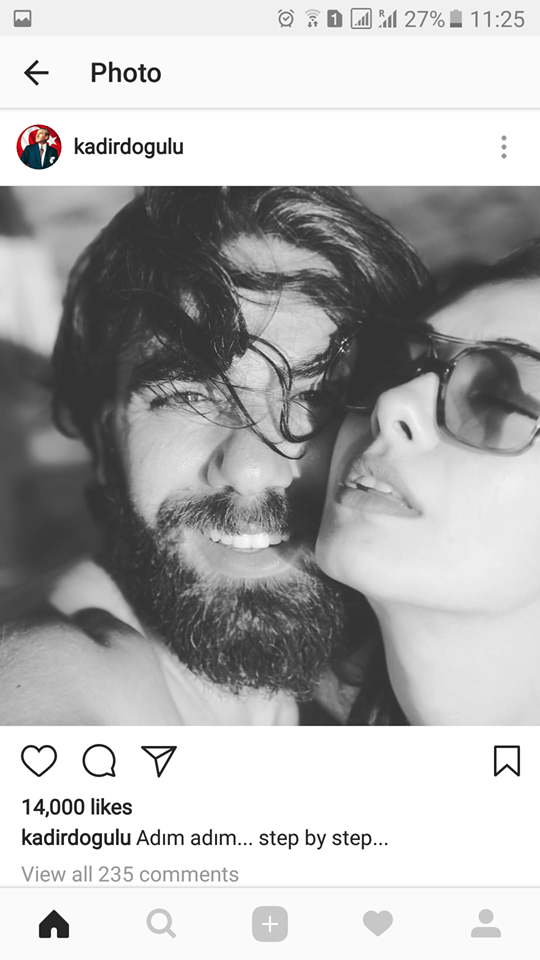 Neslihan dhe Kadir në profilet e tyre në instagram kanë postuar një foto me një shkrimku shprehin dashurinë ndaj njëri tjetrit.
