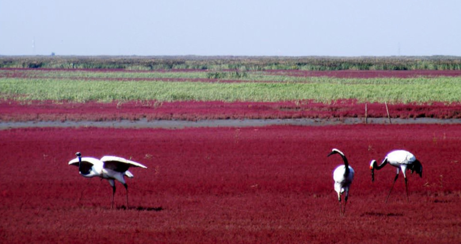 Është një vend strehimi për 236 lloje zogjsh, 30 prej të cilave janë specie të mbrojtura. Plazhi i kuq i Kinës është një bukuri e natyrës, është pjesë e rezervatit natyror Hekou Shuangtai, i përbërë nga rreth 600,000 hektarë. Përveçse është një pikë kyçe për zogjtë migrues, çdo lloj aktiviteti njerëzor, përfshirë plazhin, është i ndaluar.