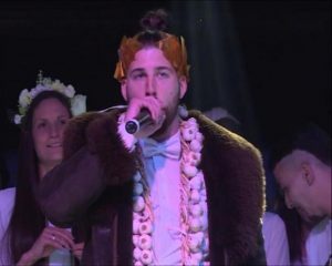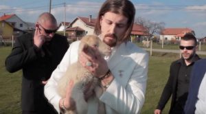 Ai doli në skenë të improvizuar në një lëndinë pas një fushe basketbolli në qendrën sportive “25 Maji” në Mladenovc, i veshur me kostum të bardhë dhe me një kurorë dafine mbi kokë.