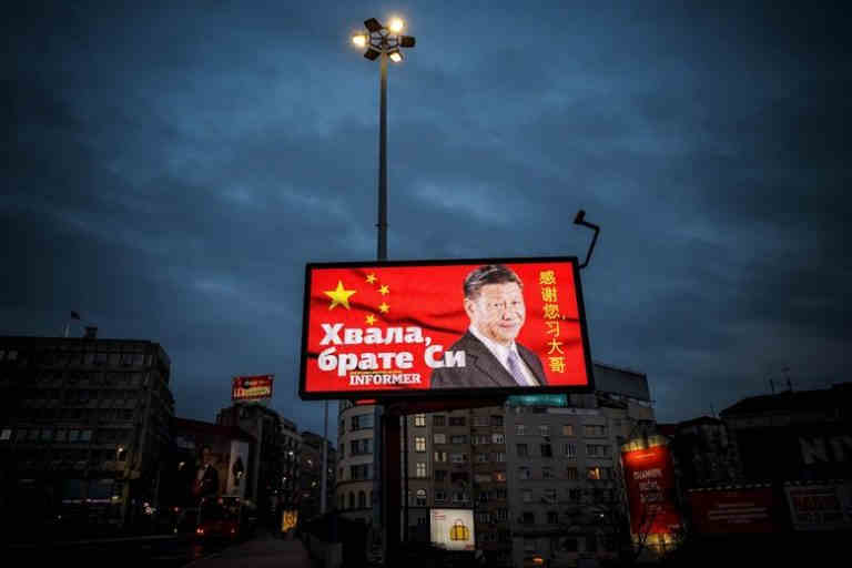 Një portret i një presidenti kinez është vendosur mbi një rrugë të Beogradit me fjalët “Faleminderit vëlla Xi”, e paguar nga një tabloid pro qeverisë.