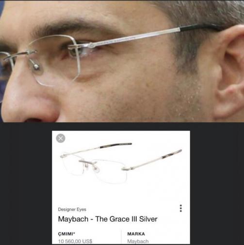 Ndërkohë që Tahiri ishte duke iu kundërvënë provave të paraqitura na prokuroria, dikush i bëri foto nga afër syzeve të tij të markës së shtrenjtë Maybach, çmimet e së cilës variojnë nga 6 000 deri në 10 500 dollarë vetëm për skelentin, ndërkohë që lentet bëhen me porosi sipas nevojave të pacientit.
