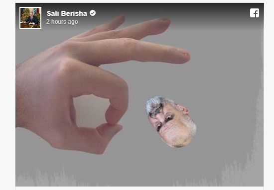 Në fotomontazhin që ka publikuar Berisha duket koka e Ramës e shkëputur nga trupi, ndëra Berisha e shoqëron me dixhiturën “një orë e më parë”.