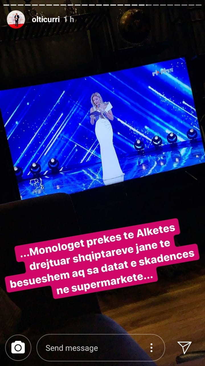 “…Monologët prekëse të Alketës drejtuar shqiptarëve, janë të besueshëm aq sa datat e skadencës në supermarket.” – ka shkruar Olti.