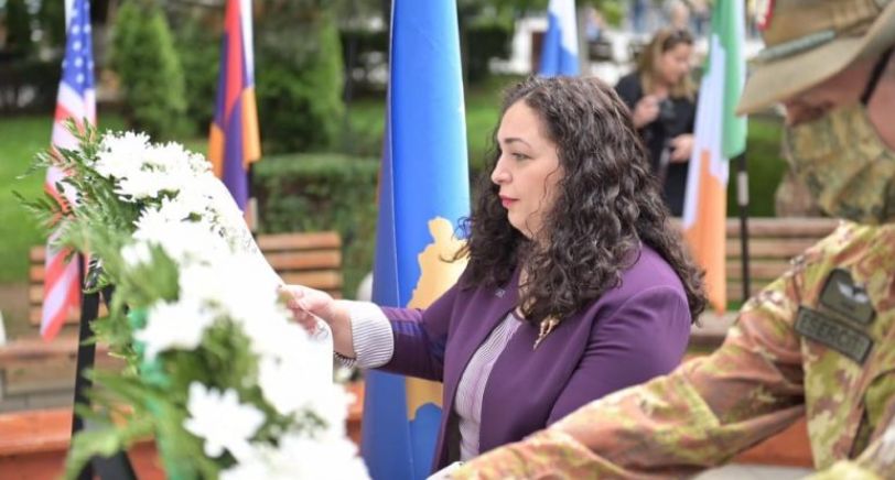 Kryetarja e Kuvendit të Kosovës, Vjosa Osmani, komandanti i përgjithshëm i KFOR-it, gjeneral Michele Risi, ambasadorë të shteteve të Quintit, diplomatë dhe deputetë të Kuvendit të Kosovës, në Ditën e Paqes kanë vendosur lule te Pllaka Përkujtimore e ushtarëve të KFOR-it në sheshin “Nëna Terezë”.