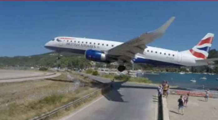 Një video dramatike shfaq momentin kur një aeroplan kalon vetëm disa metra mbi kokat e turistëve në Greqi. Aeroplani i kompanisë “Britisht Airëays” i tipit “E190” u incizua në aeroportin e Skiathosit në Greqi në kohën kur po lëshohej në tokë.