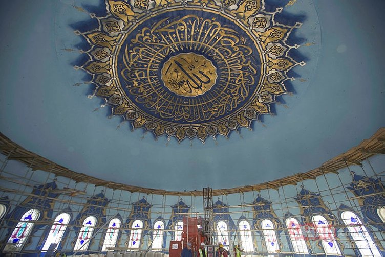Në kohën që ndërtimi po shkon drejt fundit, gazeta Sabah ka arritur të fotografojë për herë të parë nga brenda xhaminë me kapacitet prej 63 mijë personash.