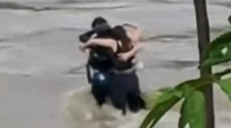Tre miq u panë duke u përqafuar me njëri-tjetrin vetëm pak sekonda para se të përfshiheshin nga përmbytjet në Itali.