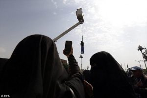 Fotografitë tregojnë 22-vjeçarin të shtrirë në një qilim përpara se të ekzekutohet dhe trupi i tij të varur në një vinç, ndërsa shikuesit filmojnë dhe fotografojnë skenën me telefonat e tyre, shkruan albeu.com.