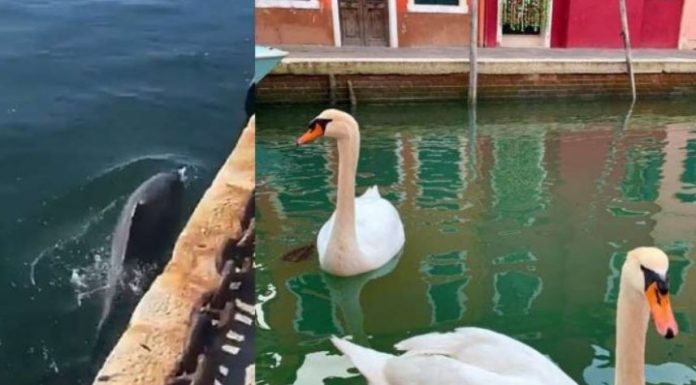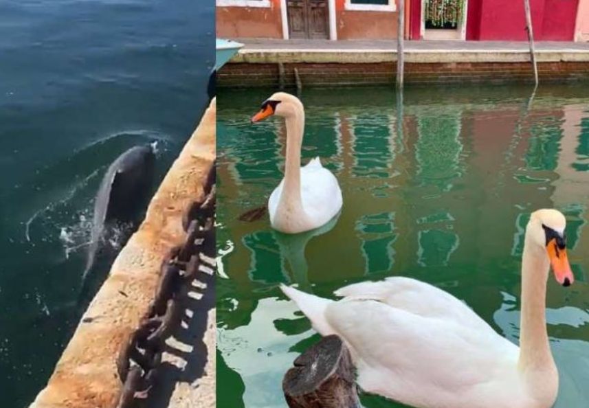 Pas bllokimit të Italisë për shkak të koronavirusit, nuk ka më barka që lundojnë në kanalet e Venecias, por ka peshq, delfinë e mjelma.