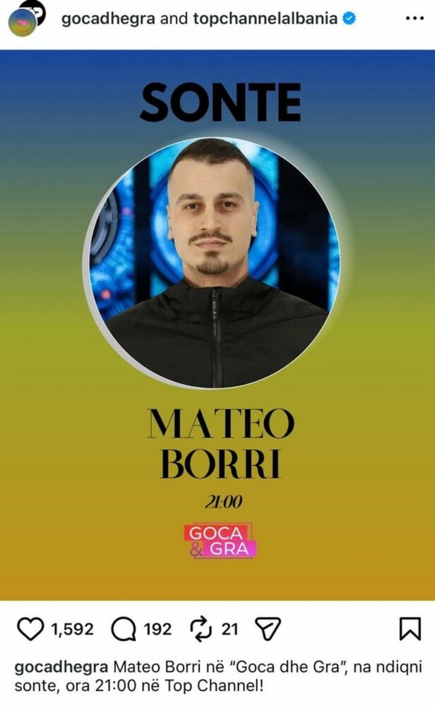 Mateo do të dalë mbrëmjen e sotme nga shtëpia e Big Brother VIP Albania 5. Produksioni ka konfirmuar se ai do të jetë i ftuar në emisionin “Goca dhe Gra” në orën 21:00.