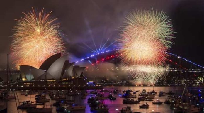Qytetarë të shumtë janë mbledhur në Sydney të Australisë për të pritur këtë shfaqje spektakolare të fishekzjarreve të vitit të ri në botë.