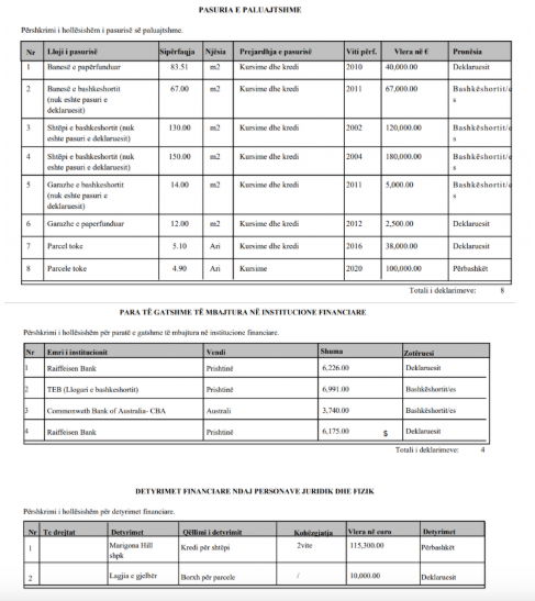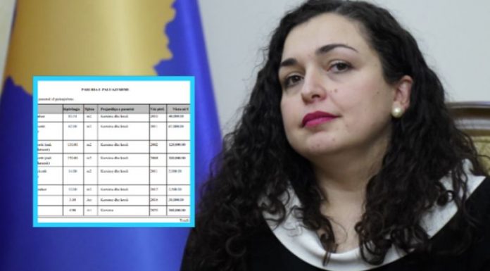 Kryeparlamentarja Vjosa Osmani ka bërë të ditur pasurinë në Agjencinë Kundër Korrupsionit. Osmani sikurse nga pozita që ka tani në politikë, e fuqishme është edhe nga pasuria që posedon ajo dhe burri i saj.