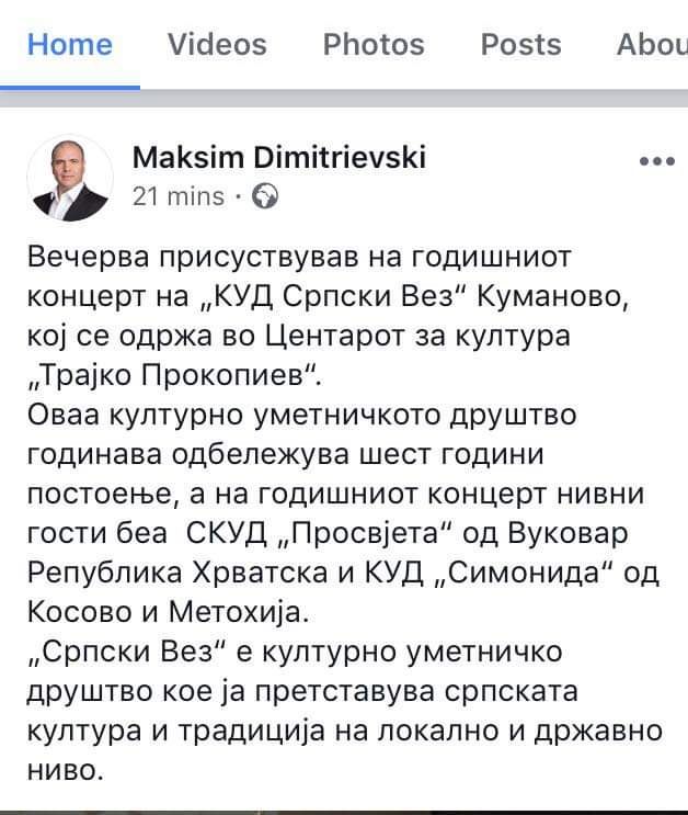 Kryekomunari i Kumanovës, Maksim Dimitrievski, me apo pa vetëdije mohon Republikën e Kosovës. Edhe atë për të dytën herë!