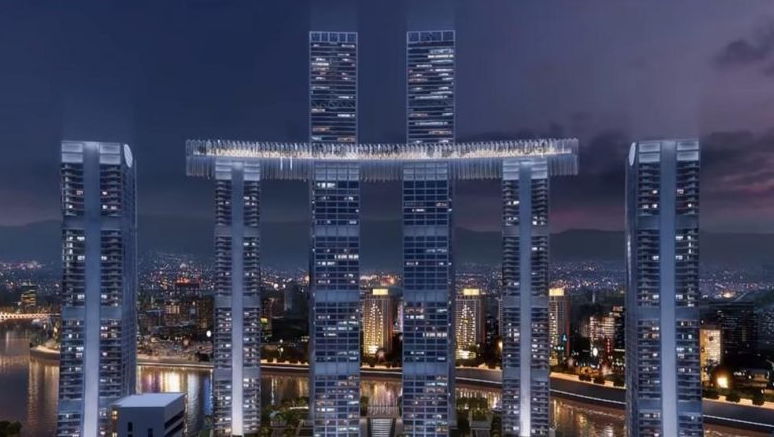 E punuar sipas projektit të arkitektit izraelit Moshe Safdi, kjo ndërtesë është 250 metra e lartë dhe ka një urë horizontale që lidh gjashtë kullat në një gjatësi prej 300 metra.