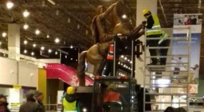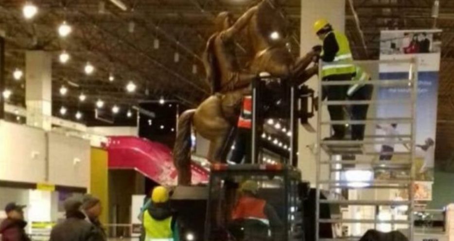 Për momentin në aeroportin ndërkombëtar të Shkupit po bëhet heqja dhe dislokimi i përmendores së Aleksandrit të Madh, transmeton Medial.mk.